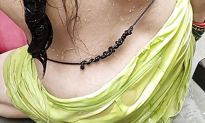 While the Desi stepmother washes bra & underpants, stepmom took off the stepson's trousers and Naked him, Then asks him to fuck her - Jism